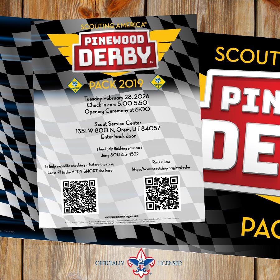 On your mark, get set, Go! Bring your own 5-oz (and no more!) car to the best race in all of Cub Scouts! This exciting flier matches our pinewood derby banner and will include all the details you need your pack to know in order to show up on time and ready to race. Fliers at 8.5"x11"