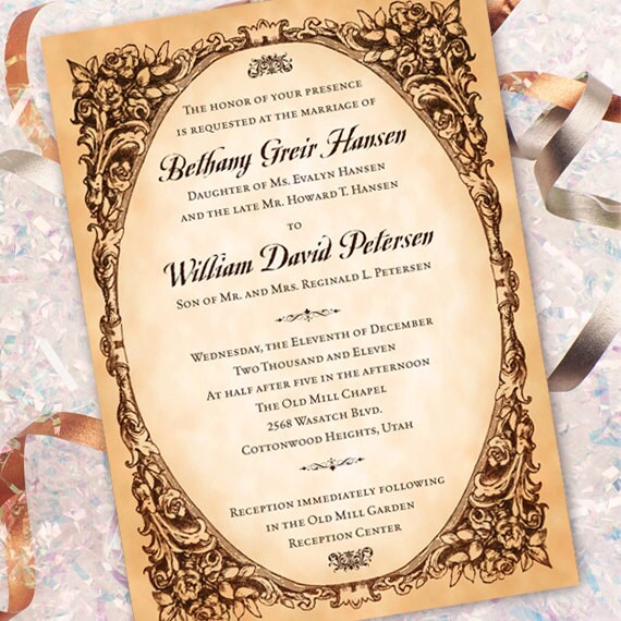 This invitation coordinates nicely with this thank you card: https://www.etsy.com/listing/221678635/instant-download-parchment-thank-you?ref=shop_home_active_1